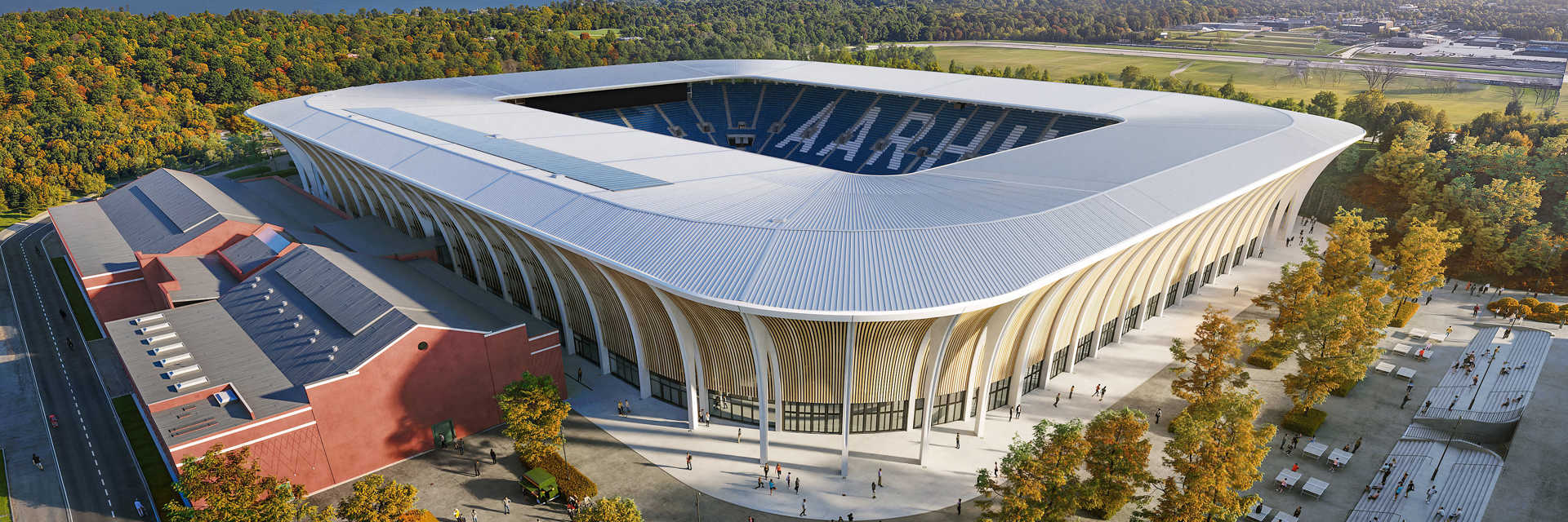 Her kan du se de nyeste illustrationer af byens nye fodboldstadion