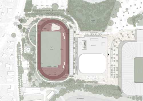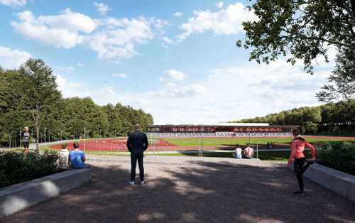 Her kan du se illustrationer fra vinderprojektet for nyt atletikstadion og Sportens Hus fra konsortiet Raundahl & Moesby og JM Eriksson med teknisk og faglig støtte fra AART Architects og Niras.