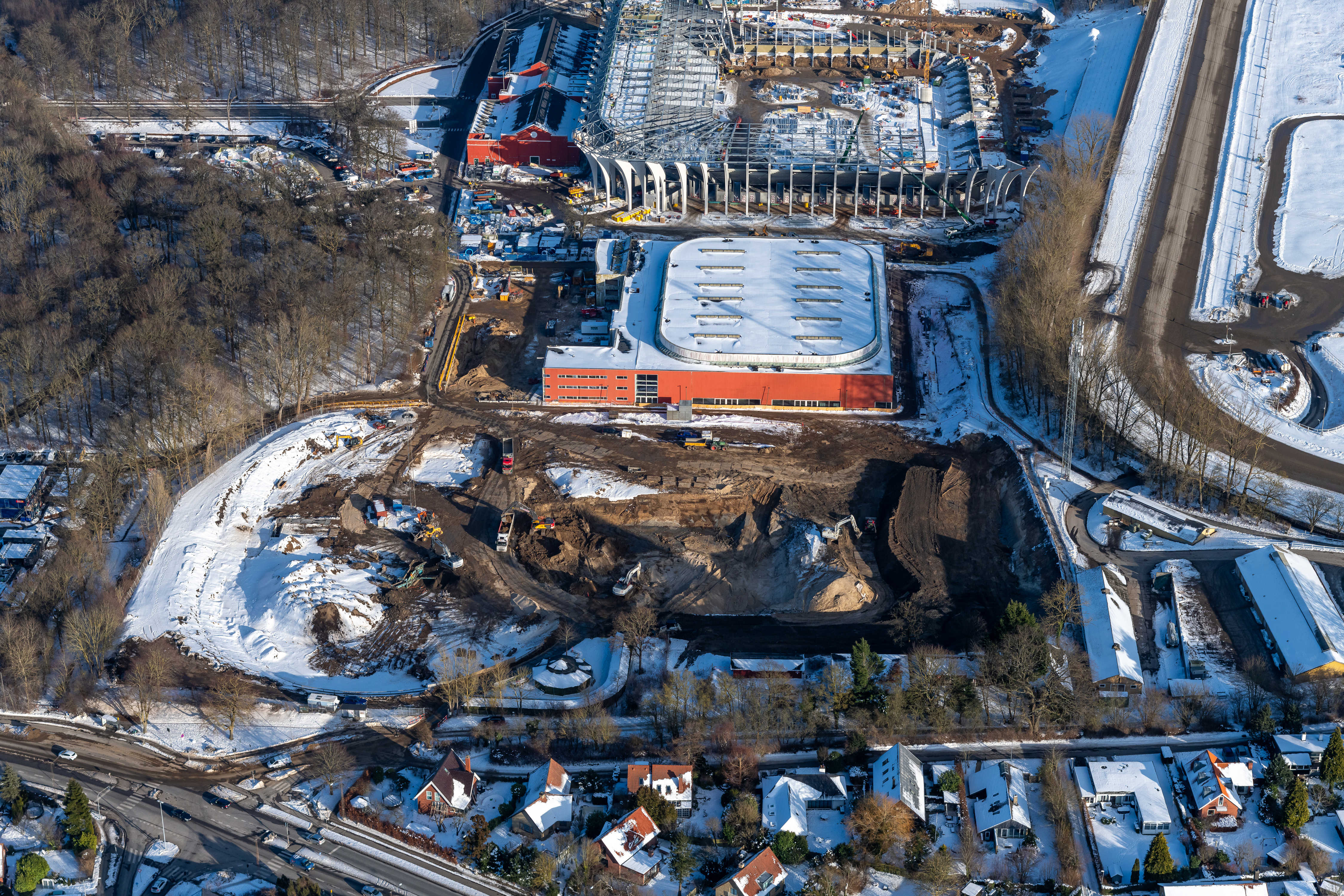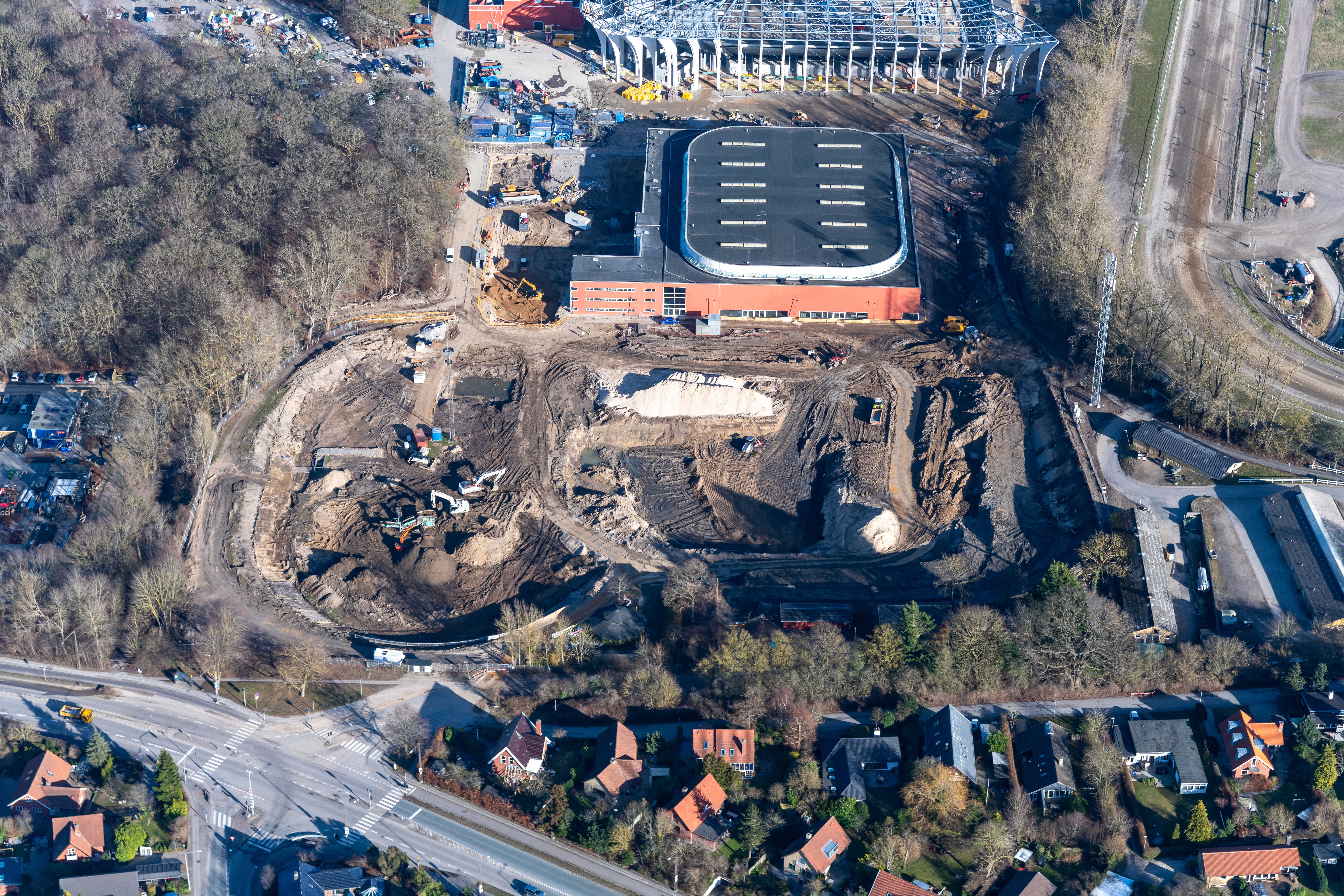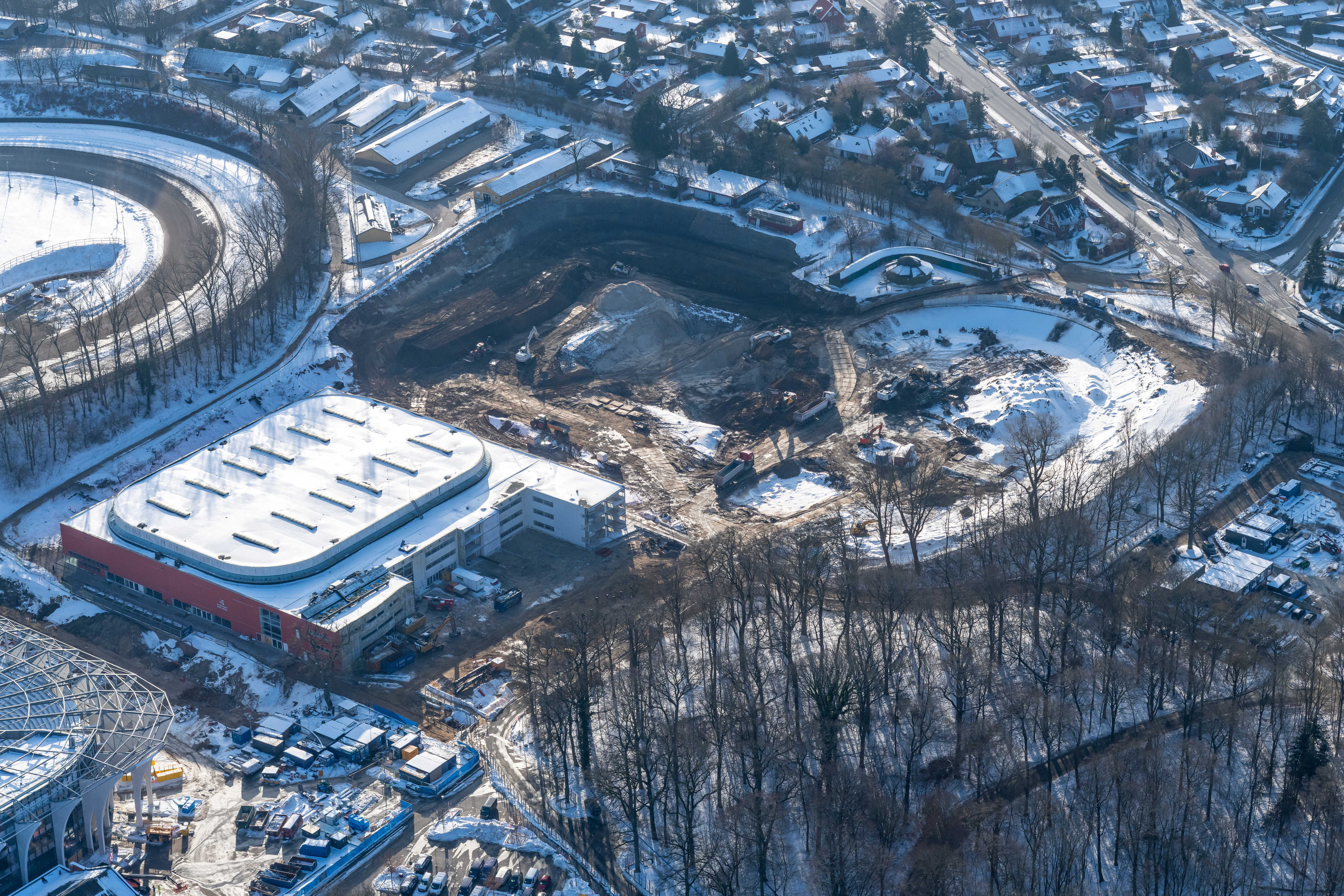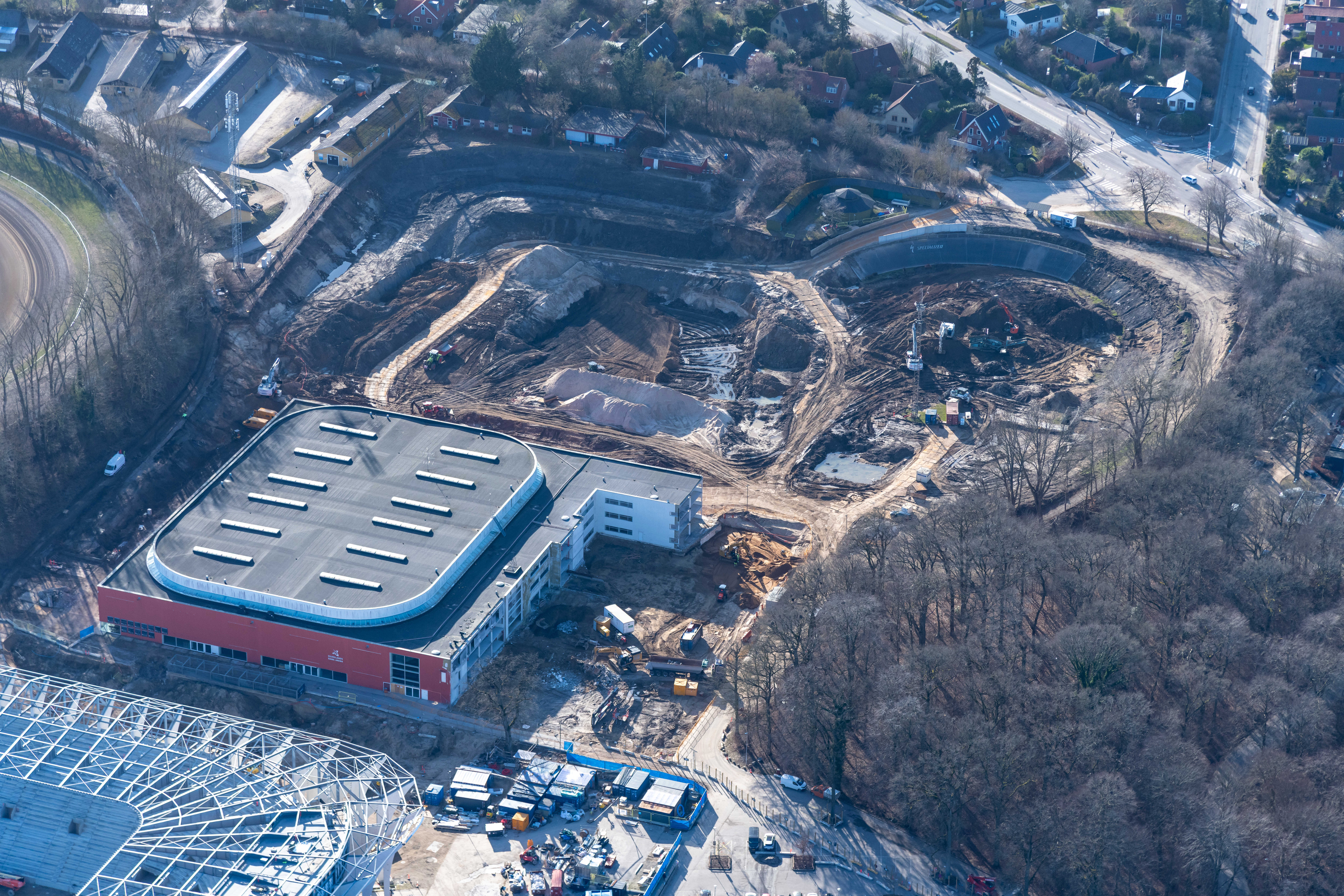 Luftfotos fra byggeriet af nyt atletikstadion og Sportens Hus