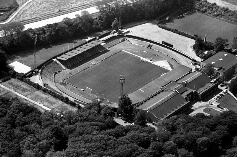 Billedtekst: Luftfoto af Aarhus Stadion, som det tog sig ud i maj 1992. Fotograf Jens Tønnesen, 1992, Aarhus Stadsarkiv.