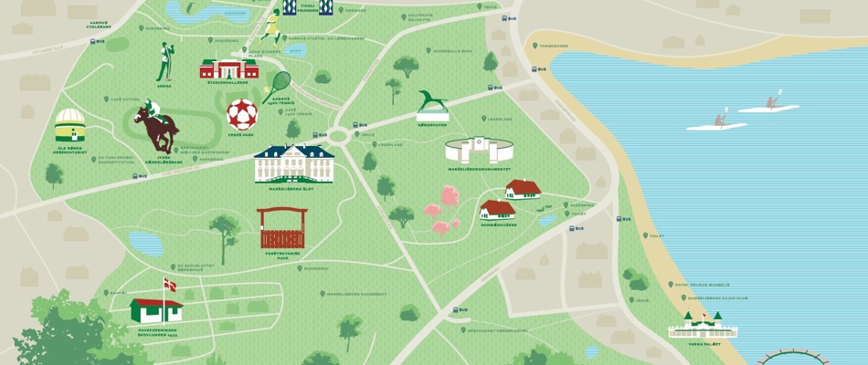 Her kan du få et overblik over de mange attraktioner, områdets kunst og skulpturer, naturoplevelser og muligheder for aktivitet og leg, som området rummer.