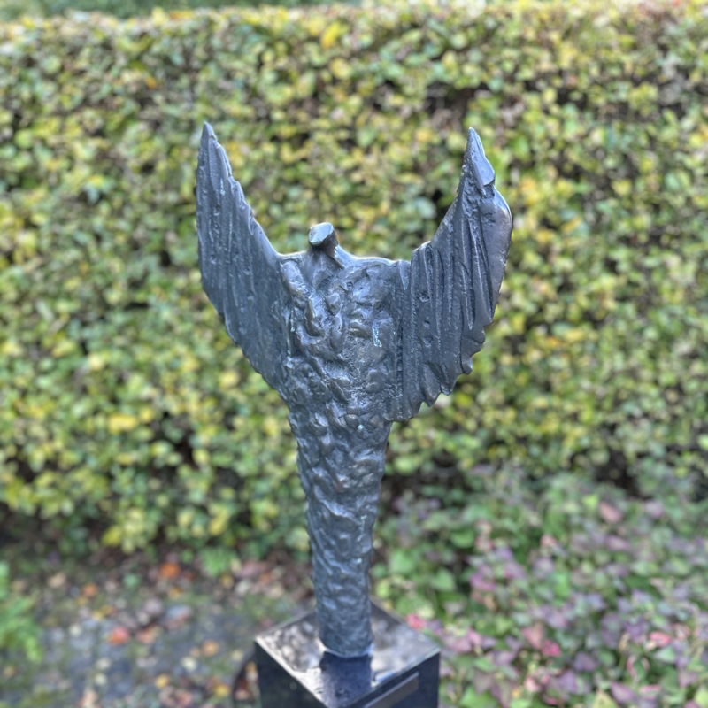 Thorvald Odgaard har lavet en navnløs og hovedløs figur, der står i urtehaven. Kunstneren er især kendt for sine englemotiver og har skabt mange af de stenskulpturer, der findes i og omkring Nibe.