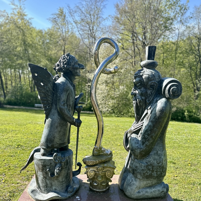 The sculpture is a collaboration between Bjørn Nørgaard and Chinese artist Xia Dewu. Nørgaard created the figure of Confucius, while Xia Dewu sculpted the figure of Hans Christian Andersen.