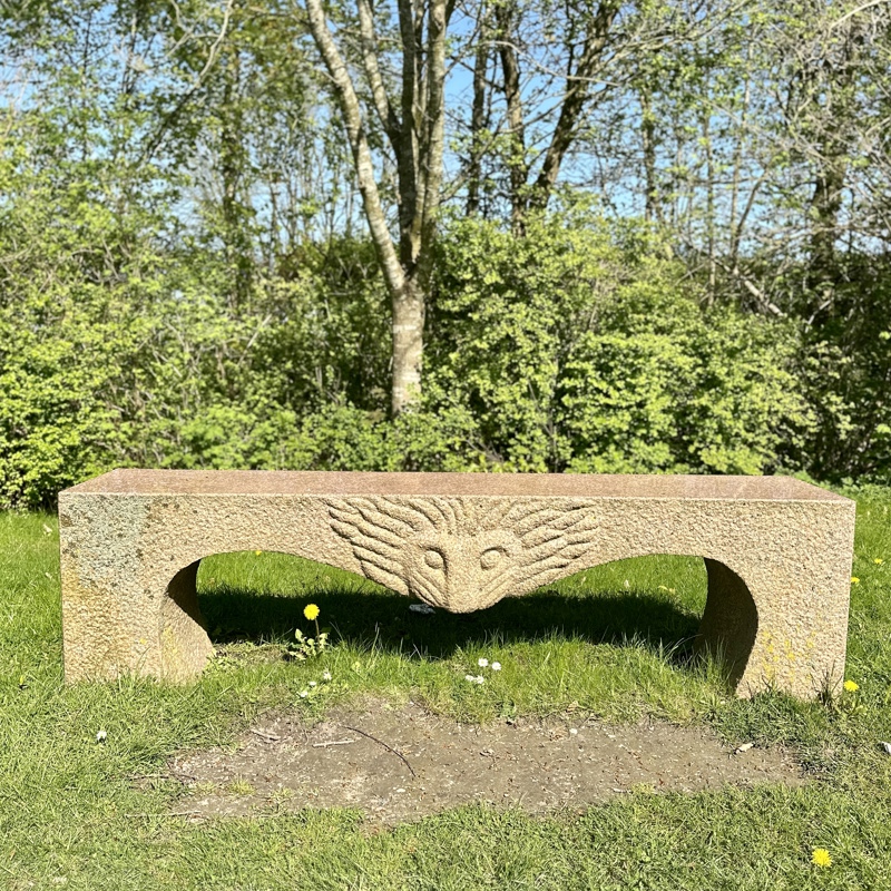Bænken er i granit og udført af billedhuggeren Claus Ørntoft, der ligeledes er kunstneren bag de nærliggende 'Tre løver og ni hjerter'.