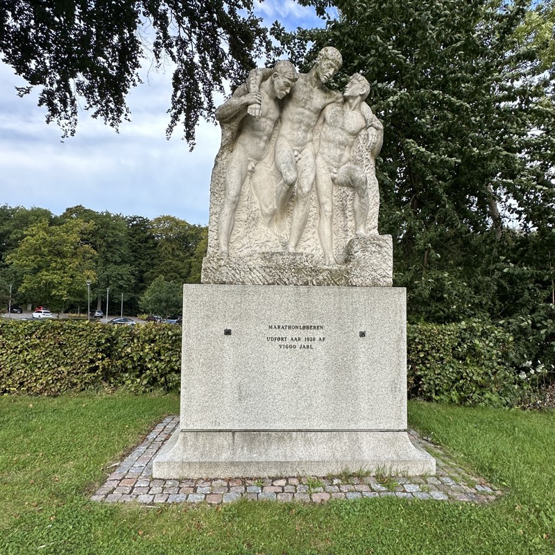 Marathonløberen is a sculpture located at John Stampes Plads in front of the Stadionhallerne.